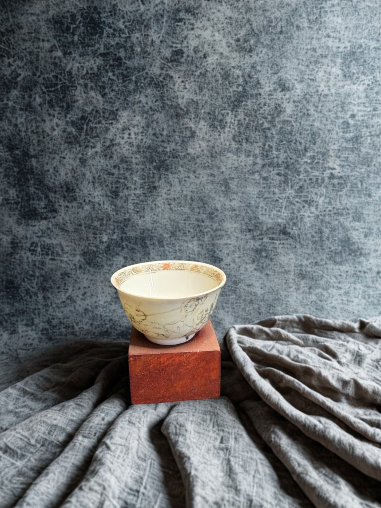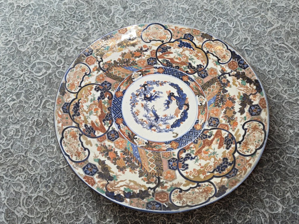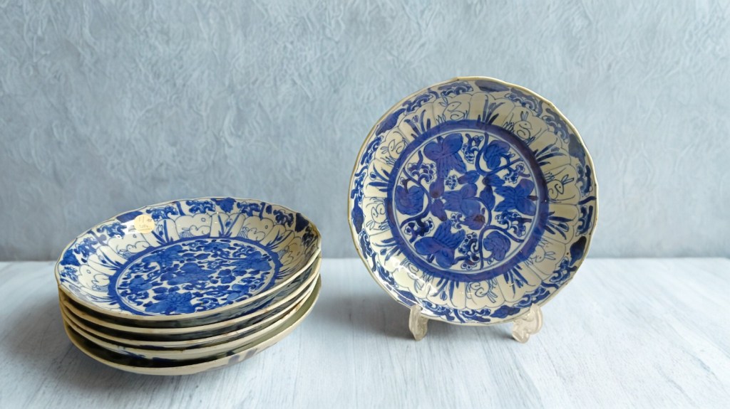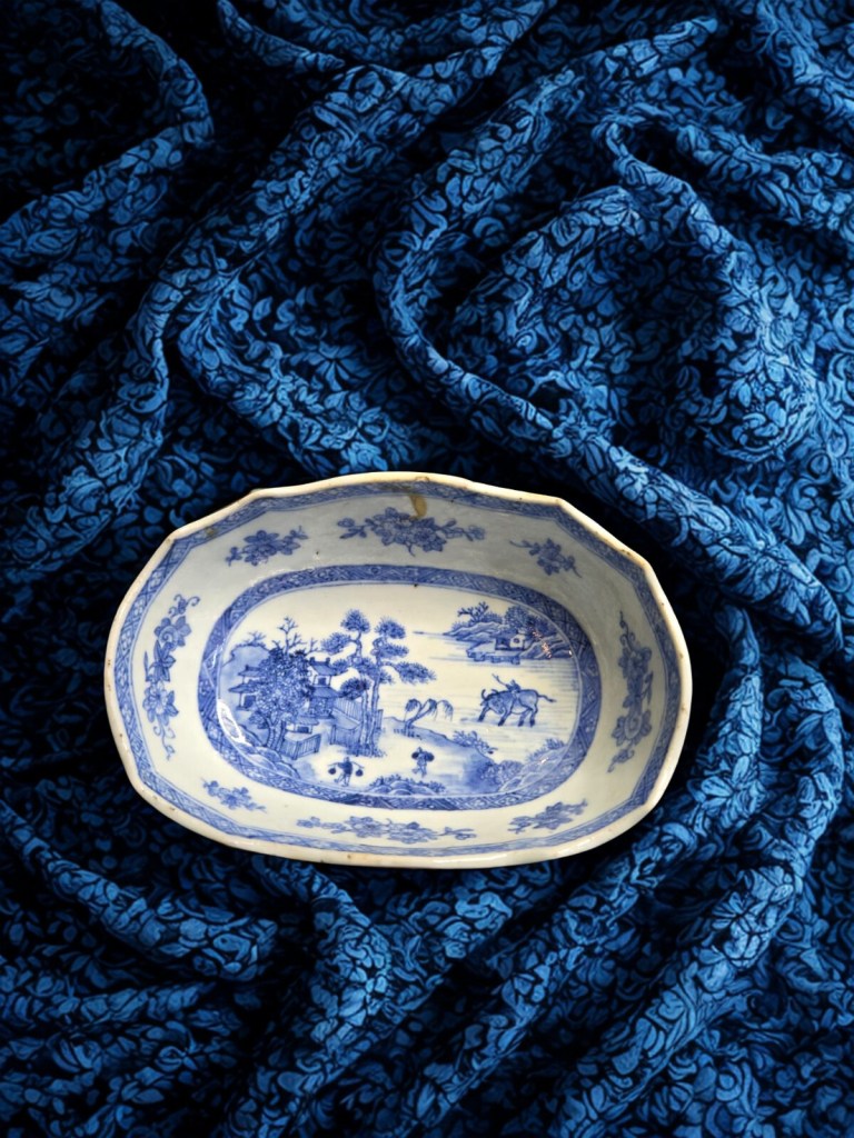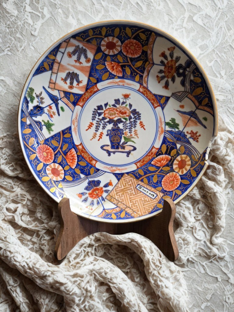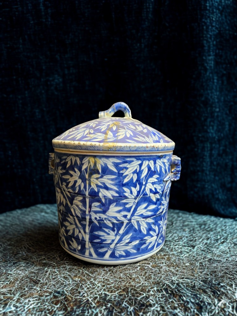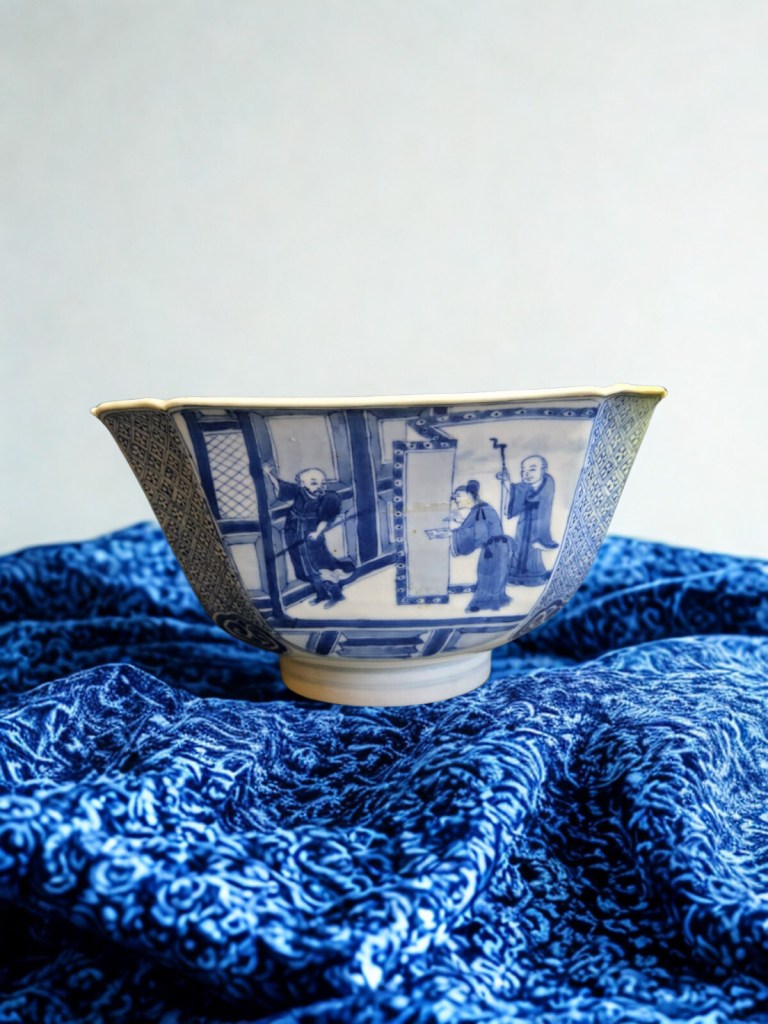 decorated in underglaze blue and coloured enamels with chrysanthemum sprays and reeds. This item was acquired at Christie’s auction house on September 4, 2003 with lot 314. Dimension : -+ 23 cm x 25 cm, Weight : 2.534 gram. (Item Code : 1079C)