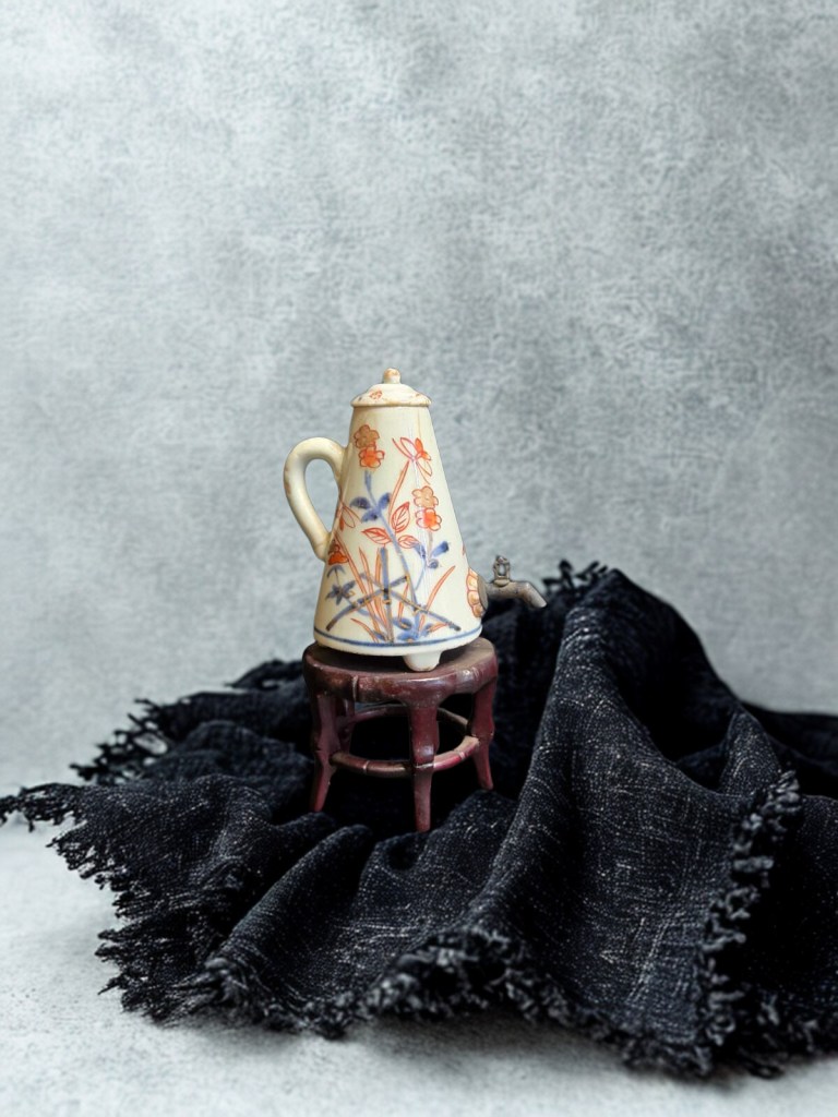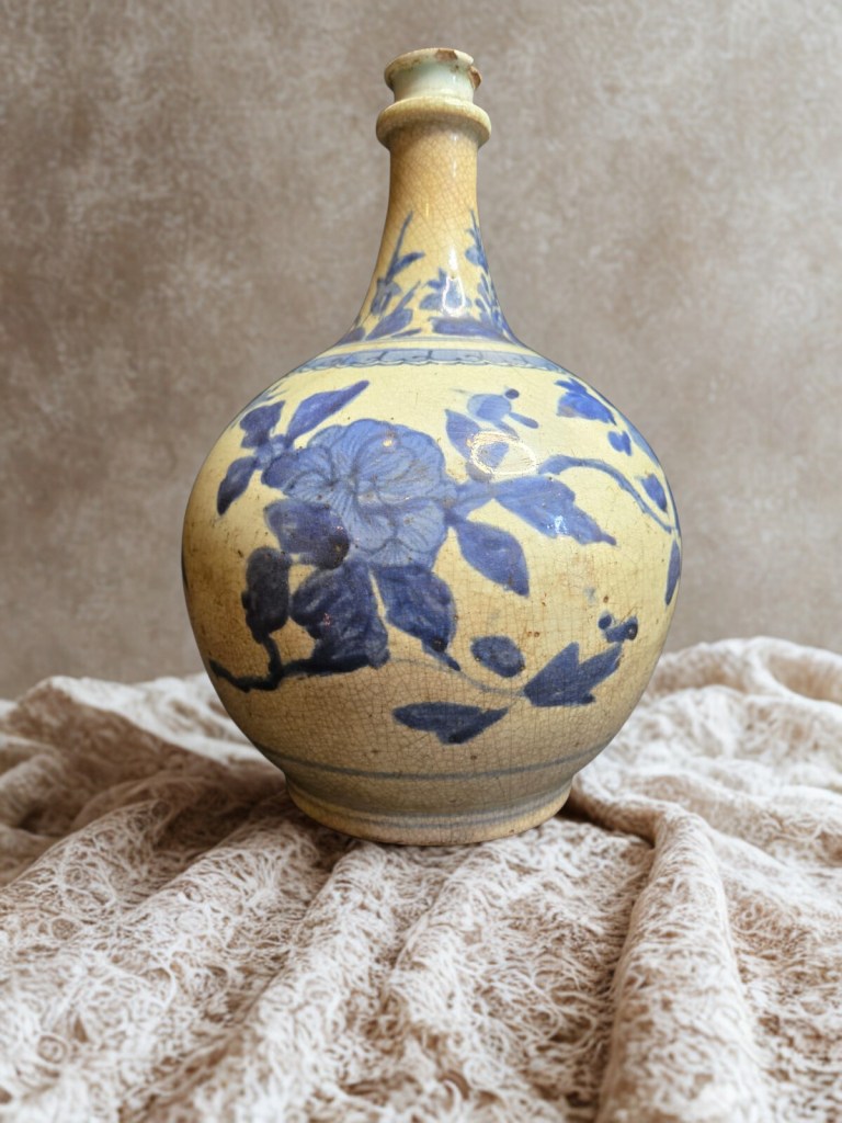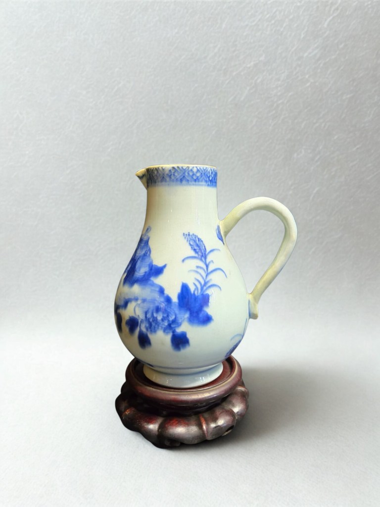 with ribbed lower body and bulbous spout, painted with scrolling flower sprays to the shoulder and neck — 7.1in. (18 cm.) high. This item was acquired from a Christie’s auction in 2007 with the lot number 1235. Dimension : -+ 16 cm x 18 cm, Weight : 798 gram. (Item Code : 1064C)