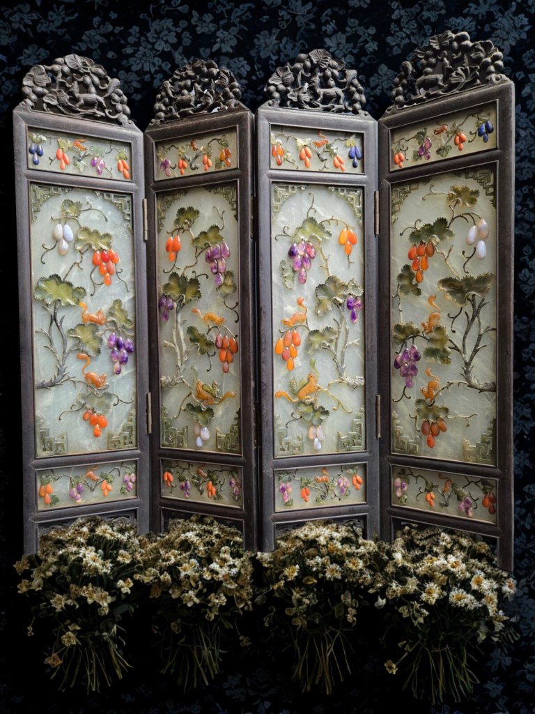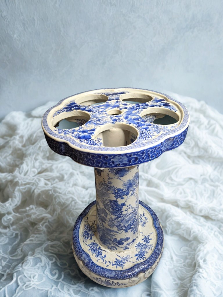 With five apertures, decorated overall with birds amongst blossom and flowers. This antique was obtained from Christie’s auction house on March 22, 2005, with lot number 150. Dimension : 34 cm x 53,3 cm, Weight : 18 kg. (Item Code : 1020C)