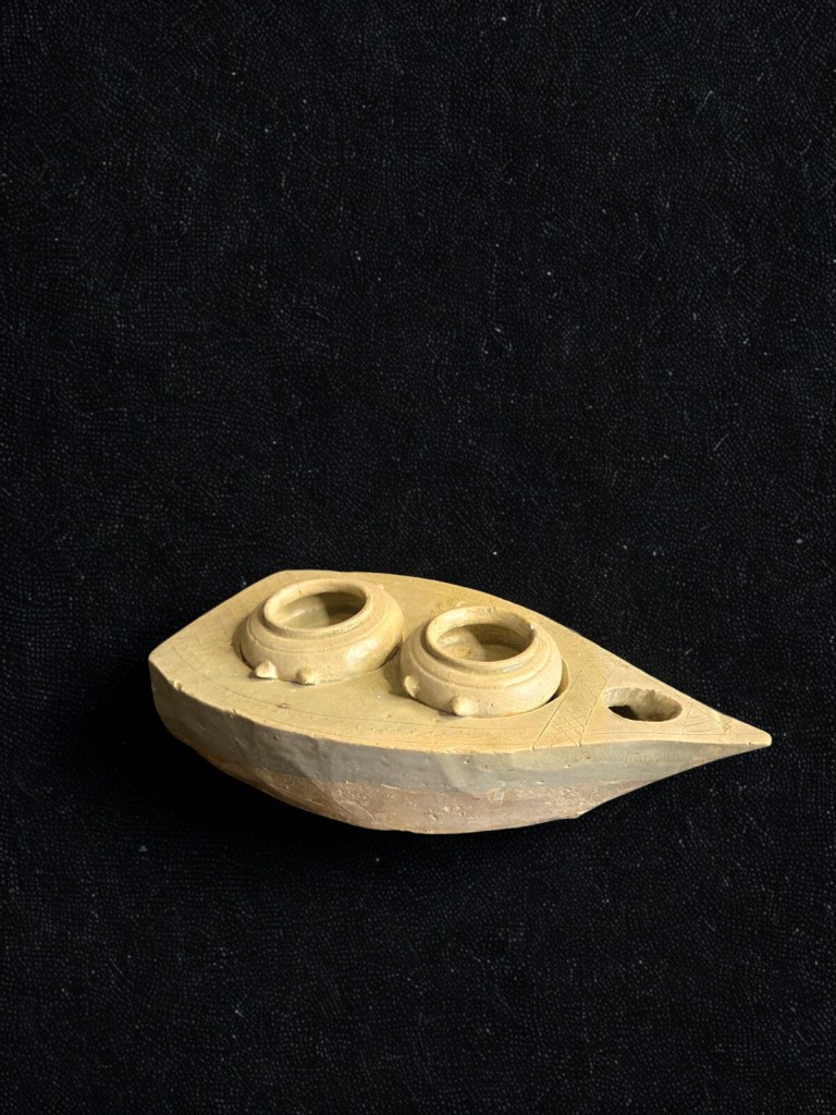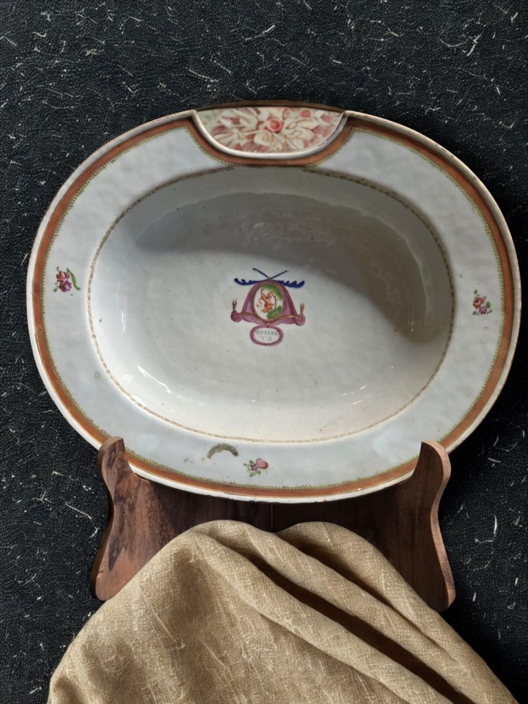 of semi-cylindrical form, painted with a large lotus spray and trailing foliage — 9¾in. (24.8cms) long, 1.125gr weight. This item was acquired from Christie’s auction house on July 10, 2003 with lot 425. (Item Code : 1069C)